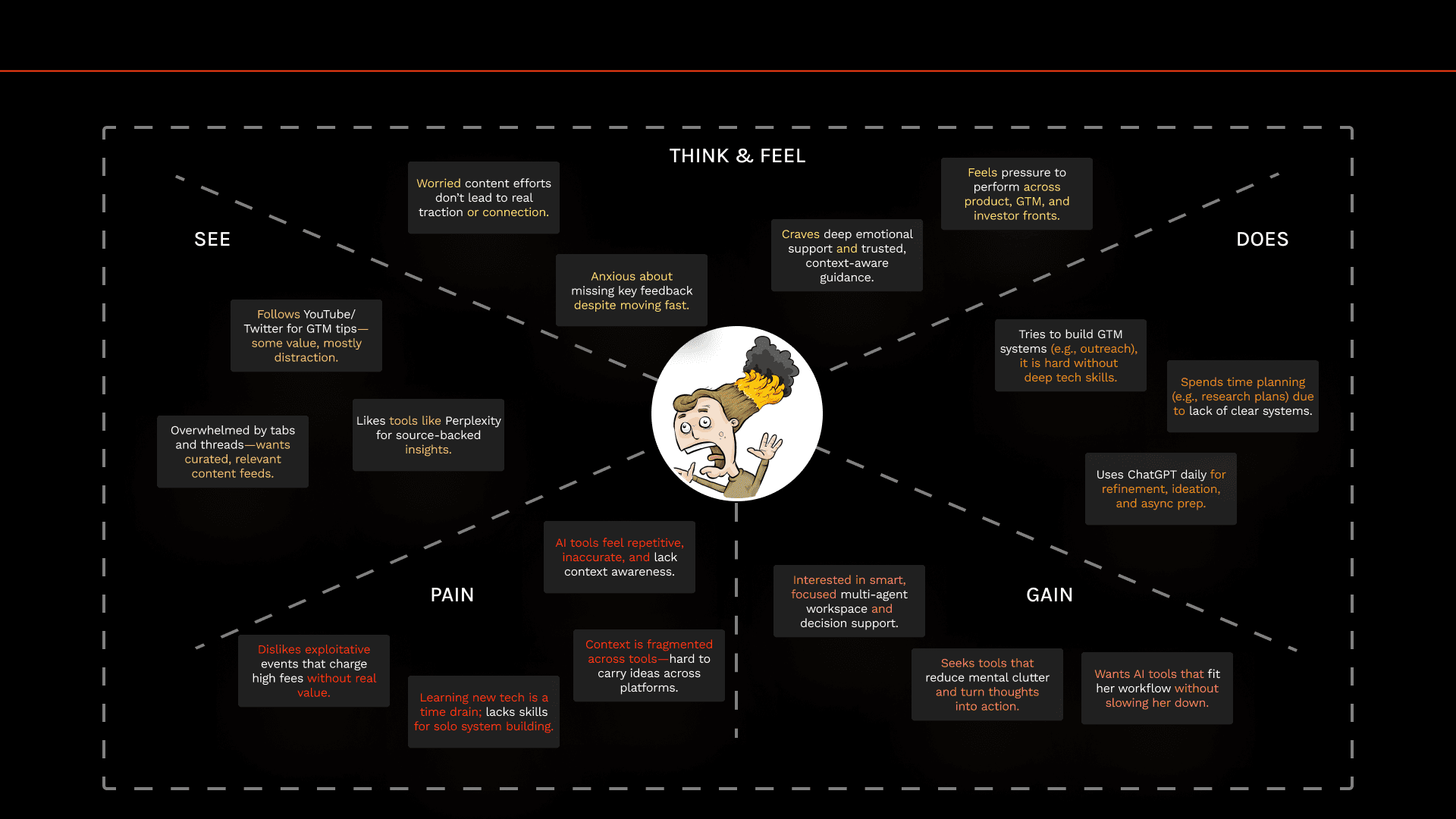 How might we help early-stage founders make confident, cross-functional decisions — with less mental strain?
