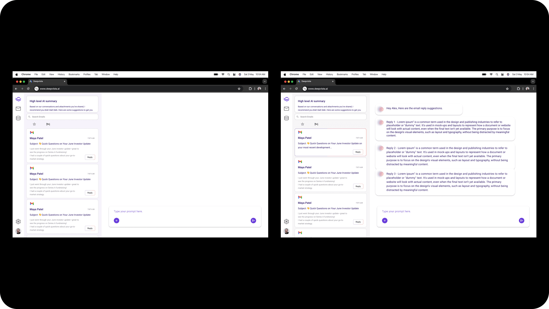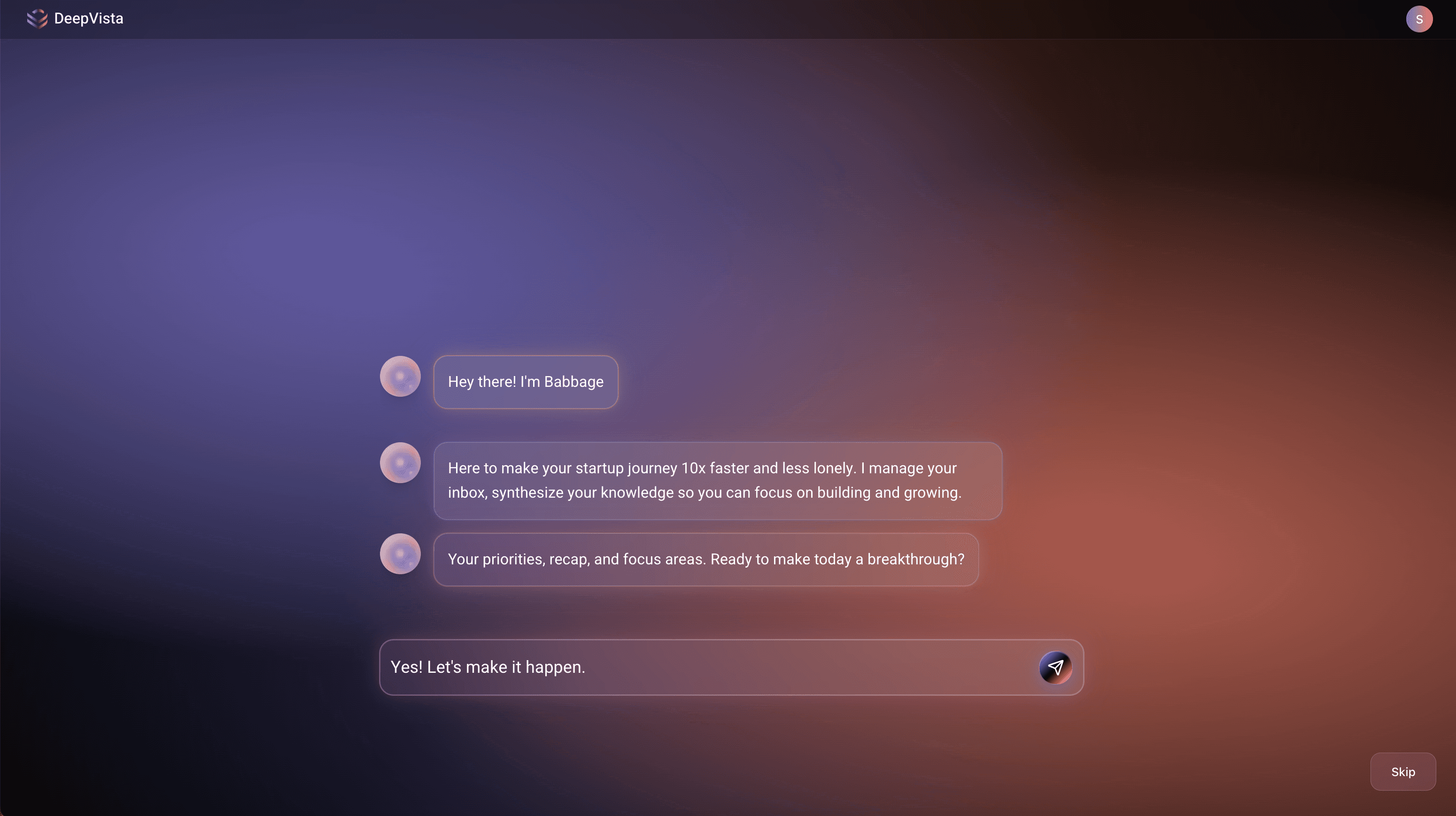 Product Owner want the AI assistant to be more humane and DeepVista AI will bethe technology product. I designed Babbage, DeepVista’s proactive AI executive assistant. Babbage helps founders manage inbox overload, reply with the right context, and surface what truly matters. It turns cluttered communication into clarity — summarizing insights, extracting tasks, and even generating contextual follow-ups.
