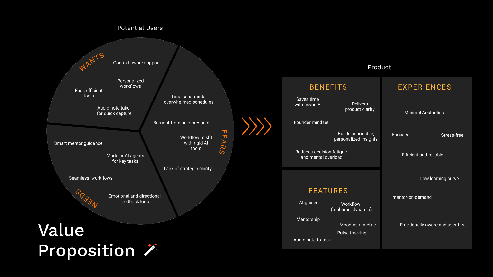 Mapped founder pain points (context-switching, lack of clarity, inconsistent mentorship)