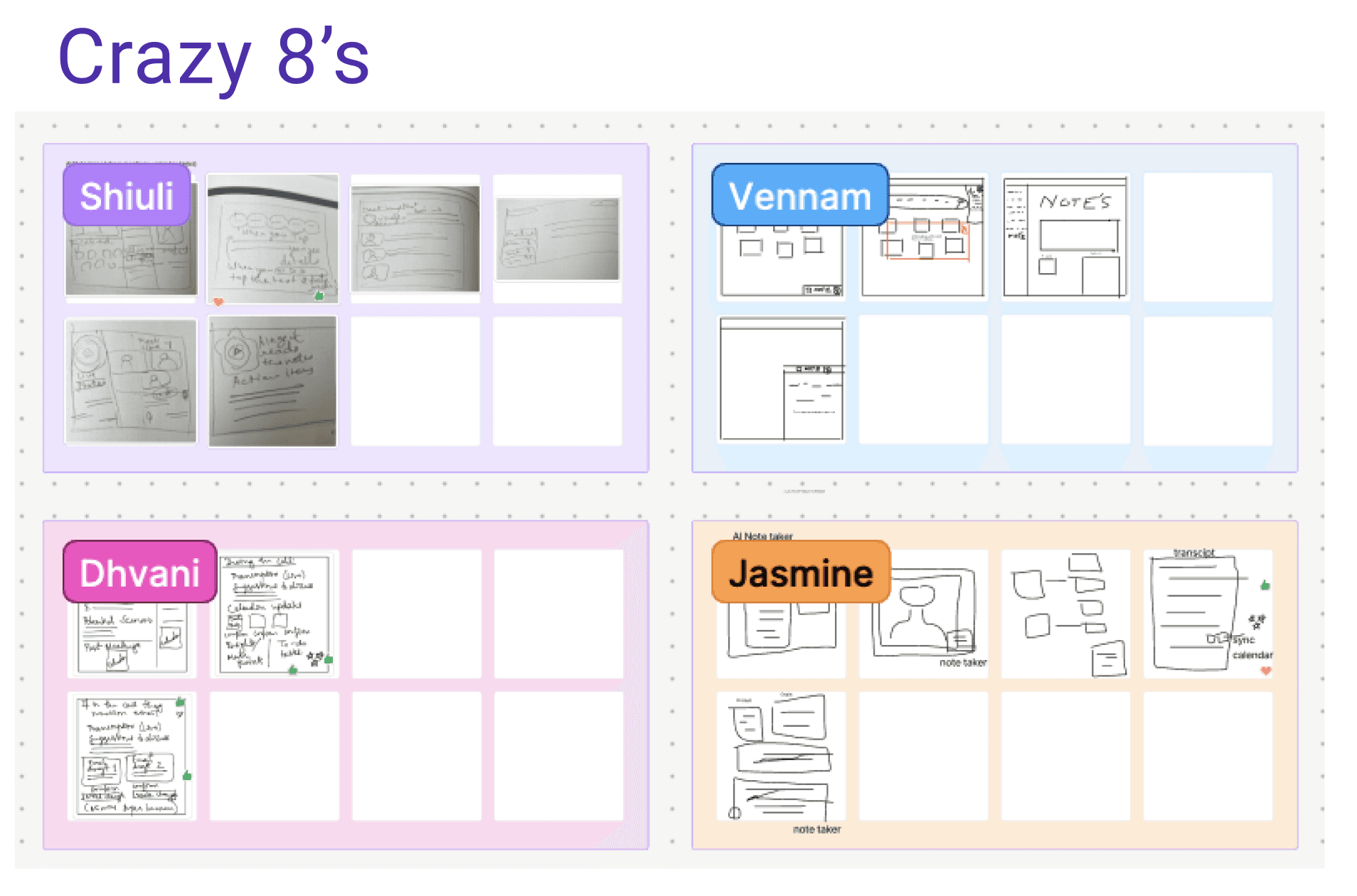 Ran Crazy 8s, inverse sketching, and feature prioritization